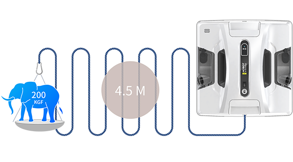 Страхувальний трос завдовжки 4,5 метри витримує навантаження до 200 кг. Завжди прив'язуйте HOBOT до троса перед використанням. Це необхідно виконувати в приміщенні, коли пристрій є нерухомим.