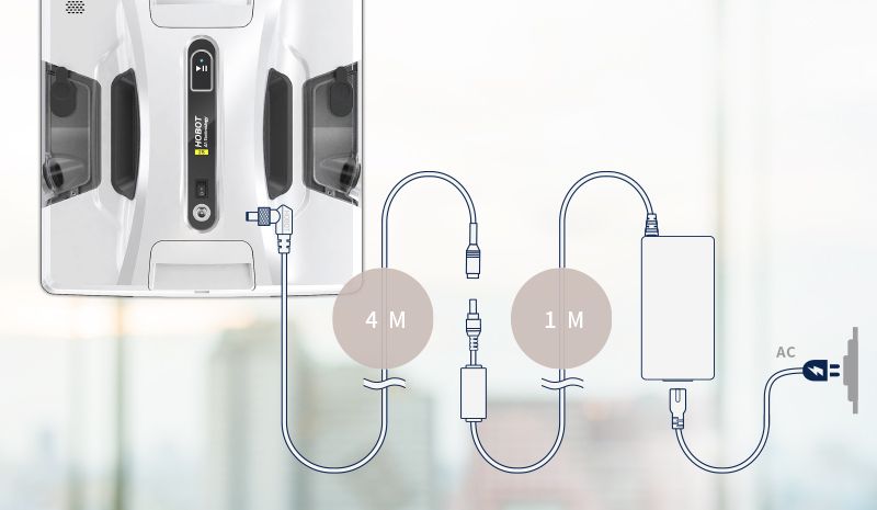 Шнур живлення довжиною 5 метрів дозволяє HOBOT працювати на великих площах і поверхнях далеко від джерела живлення.